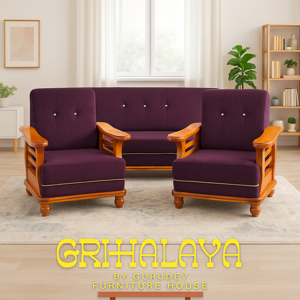 Grihalaya Premium Sagwan (Teakwood) 5-Seater Wooden Sofa Set | 3+1+1 | By Gurudev Furniture House